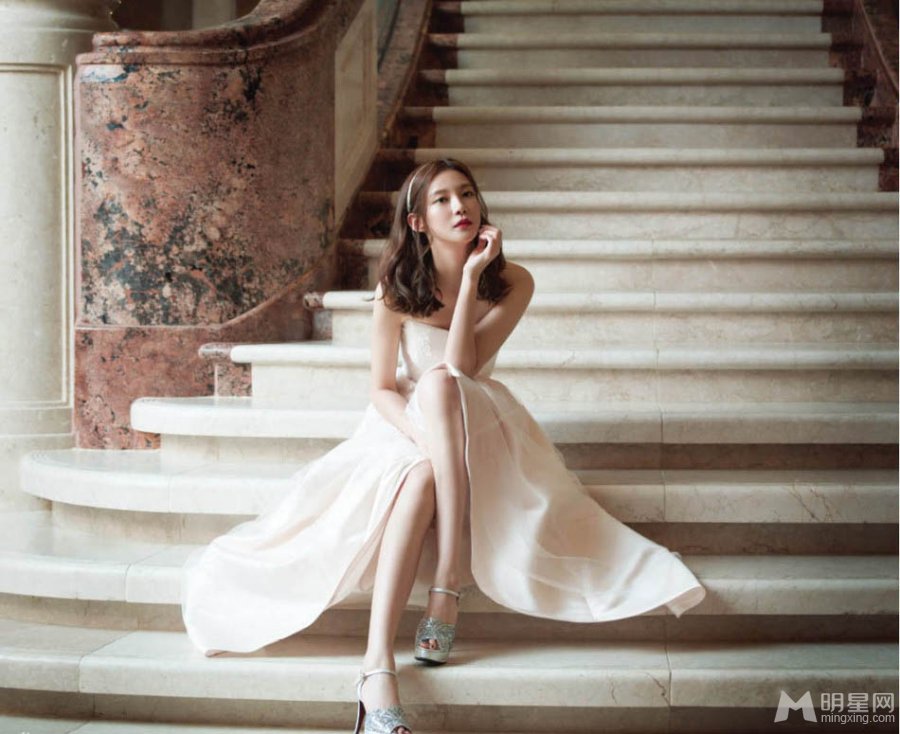 韩星车艺莲婚纱写真 清新淡雅回眸一笑