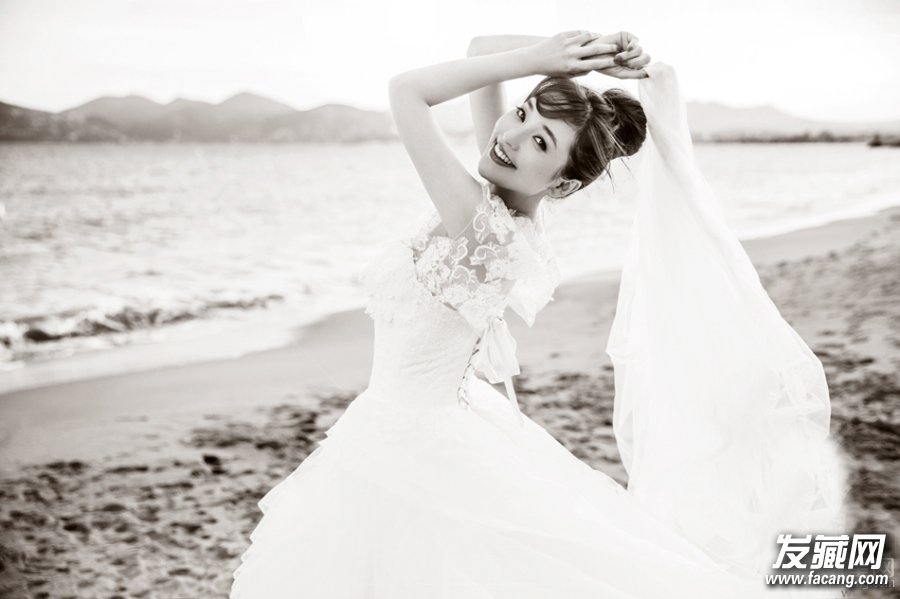 金莎曝唯美婚纱写真 浪漫海边期待出嫁